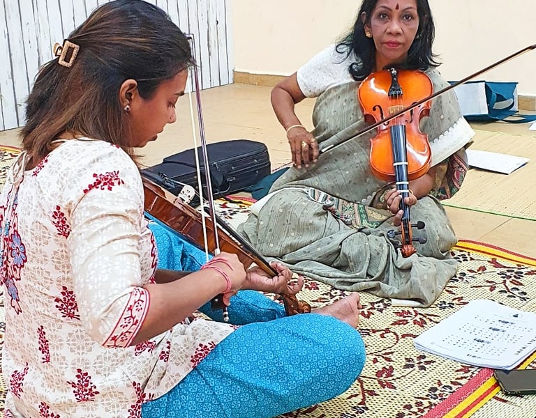 Comprehensive Curriculum: Our structured yet flexible lessons cover the essentials you need to progress, combining technical skills with the emotive art of Carnatic music.